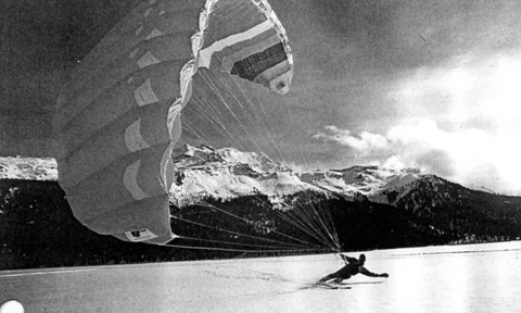 Le tout debuta en hiver 72/73. Devant la porte de sa maison, Dieter Strasilla faisait des va-et-vient sur le lac gele avec une curieuse voile. Andrea la suivait sans cesse; pour finir, ils lierent amitie. Puis vint le jour ou il decolla alors qu 'il se faisait remorquer skis aux pieds. "Comment faire pour redescendre?", demanda-t-il a ce moment-la. Plus tard, il quitta le sol de plein gre faisant des sauts de 40 ou 50 m pardessus toute sorte d 'obstacles. " Les gens hurlaient pensant qu'un ovni tombait du ciel." Bientot, il remonta des pentes a faible inclinaison puis descendit des versants abruptes jusqu'a prendre reellement l'envol...