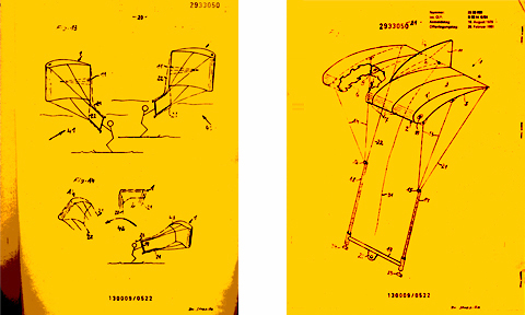 Kommentar 2005: wenn man die GLEITSCHIRME und heute auch die modernen KITESEGEL anschaut, wird man erkennen, dass alles Wesentliche bereits vor 25 Jahren in Strasillas Patenten beschrieben ist.