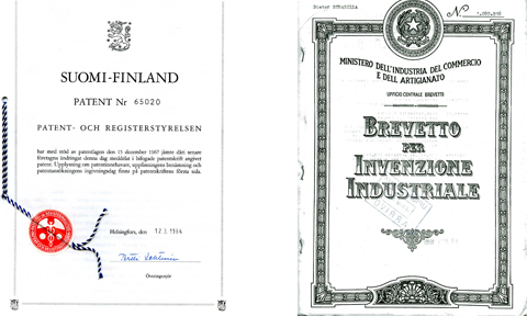 Patenturkunde FinlandspacerPatenturkunde Italien
