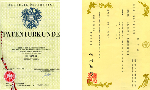 Patenturkunde ÖsterreichspacerPatenturkunde Japan